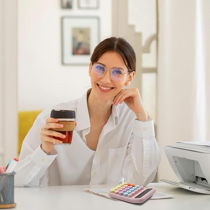 - Quality & Appearance - Calculator large display for women is made of durable ABS to ensure normal daily use. The typewriter-style clean lines and retro round keys and reasonable button layout make it beautiful and practical, perfect size, fits right on the desk and does all you need in a tight spot.