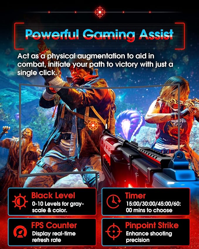 - Prioritizes Gaming Performance: Up to 240Hz high refresh rate, more immersive 1500R Curvature, FreeSync, MPRT 1ms Response Time, Black Level adjustment(shadow booster), Game Modes Preset, Crosshair.