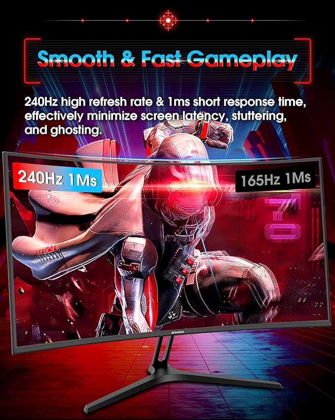 SANSUI 27 Inch Curved 240Hz Gaming Monitor FHD 1080P, 1500R Curve Computer Monitor, 130% sRGB, 4000:1 Contrast, HDR, FreeSync, MPRT 1Ms, Low Blue Light, HDMI DP Ports, Metal Stand, DP Cable Incl.