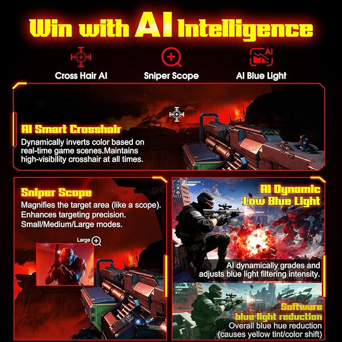 - 34 Inch 240Hz UWQHD(3440*1440) Fast VA Curved 1500R Ultrawide 21:9 Gaming Monitor with AI Crosshair and AI Bluelight.