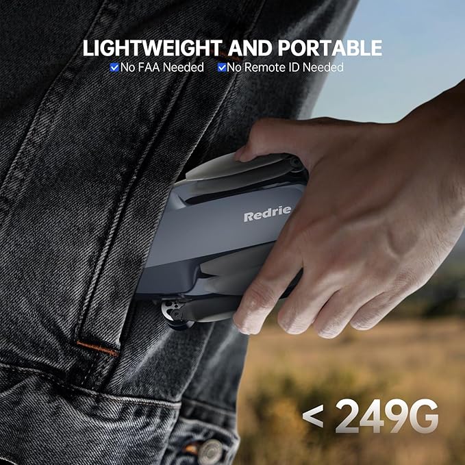 - Lightweight & Portable: The HK33 drone weighs under 250g, eliminating the need for FAA registration and offering a hassle-free flying experience. Its foldable design and included carrying case make it easy to store and highly portable, perfect for outdoor adventures.