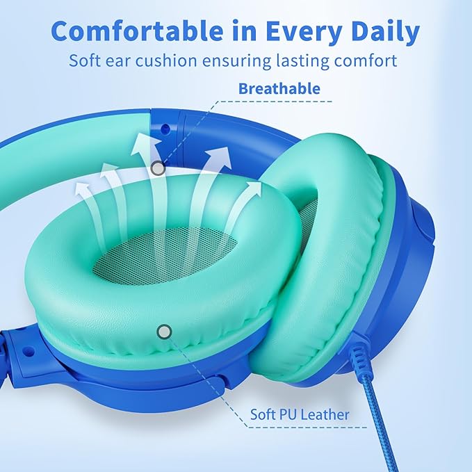 - 【Comfortable & Adjustable Fit】Designed for long listening sessions, over ear headphones wired feature an adjustable headband and 90° rotating ear cups that provide a snug, personalized fit for various head sizes, making wire headphones suitable for adults and kids. Soft memory protein ear cushions and pads ensure comfort throughout the day and can hang around your neck when not in use