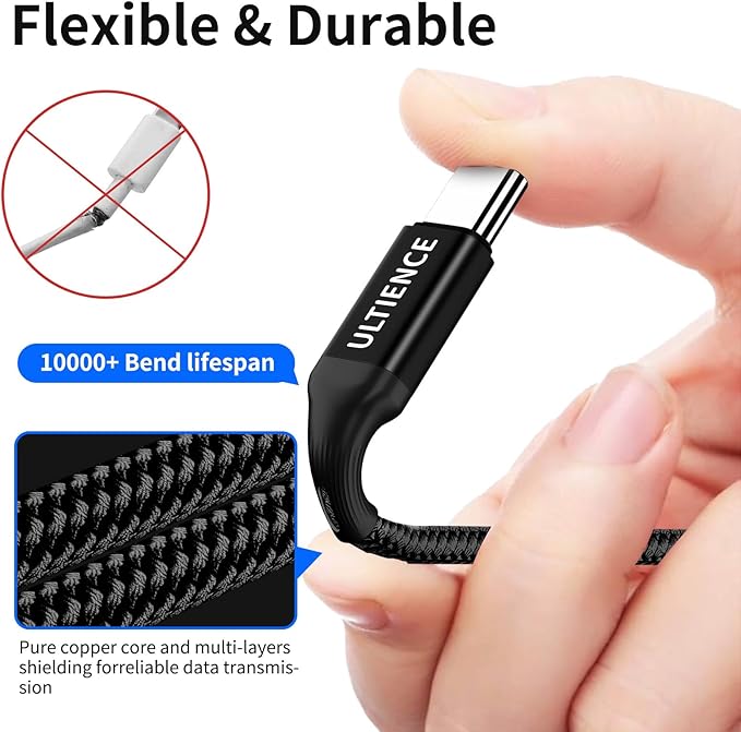 - Tangle-Free Nylon & Aluminum Body: The nylon-braided cable resists knots and tangles, while the aluminum shell withstands drops, scratches, and daily wear. Built to last! Compact design fits side-by-side on laptops with 2 USB c ports—no bulk, no clutter