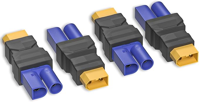 - Package include: 4PCS XT60 male to EC5 male connectors. Suitable for converting batteries with XT60 to EC5 batteries on Electronic Speed Control/Chargers.