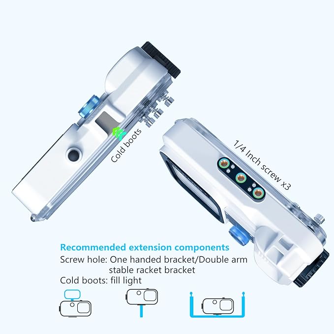 - 【Professional Diving Shell】:Tested to IPX8 certified—diving depth to 131 feet/ 40 meters. Specially designed for diving enthusiasts, it allows you freely to taking photos or shooting videos in the underwater. The case has three 1/4 screw hole for professional photography equipment like monopod, tripod or stabilizer.This diving phone case also support external lens expansion for install filters and wide-angle lenses. (Note: all expansion equipment you need to buy. )