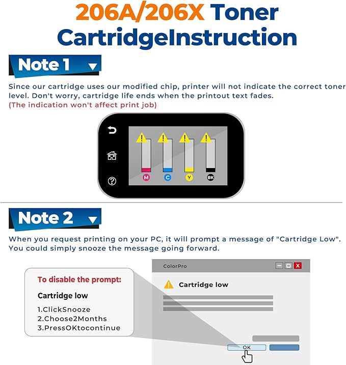 - With Chip: Compatible for HP 206a toner cartridges 4 pack Color LaserJet MFP 283 fdw toner cartridges Color Laser Jet MFP M283cdw toner cartridges Color Laser Jet Pro M255dw toner cartridges, contains the chips, no need to remove and install them. (Not original)