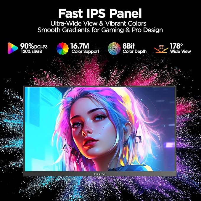 - Fast IPS and HDR400 Technology: The KOORUI G2722P monitor is equipped with a Fast IPS panel, offering a wider viewing angle and more accurate color performance. With a 178° wide viewing angle, the image remains sharp and vibrant from any perspective. HDR400 technology further enhances brightness and contrast, making dark areas more detailed and bright areas more vivid, resulting in a more realistic visual effect.