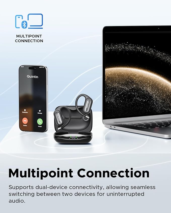 - [Dual Device Connection & App Control] - Multipoint connection lets you pair with two devices simultaneously and switch between them effortlessly. Download the Truefree App to unlock deeper control, adjust EQ presets, personalize sound effects, and fine-tune your audio to match your preferences.