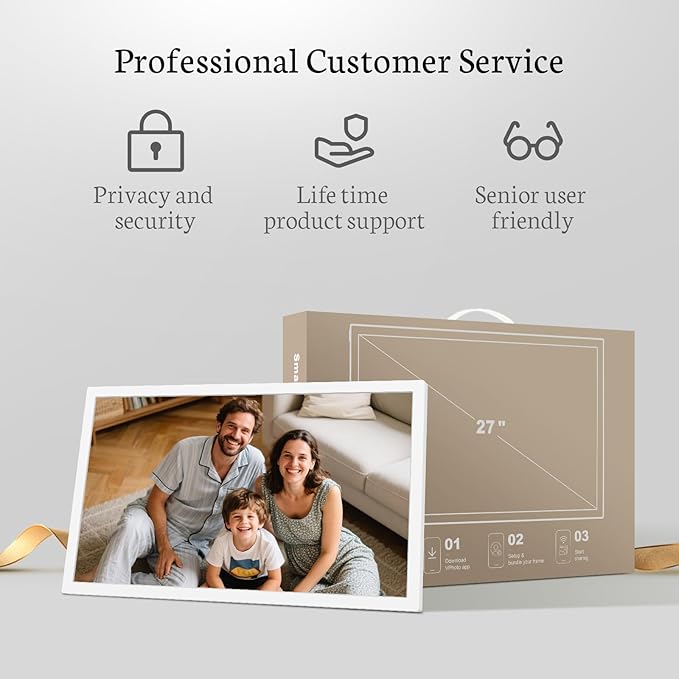 BSIMB Large Digital Picture Frame 27 Inch, 1920x1080 FHD WiFi Digital Photo Frame Electronic 32GB Display, Wall Mount Included, Share Pictures/Videos via App Easy Setup Gifts for Mom(Non-Touch), White
