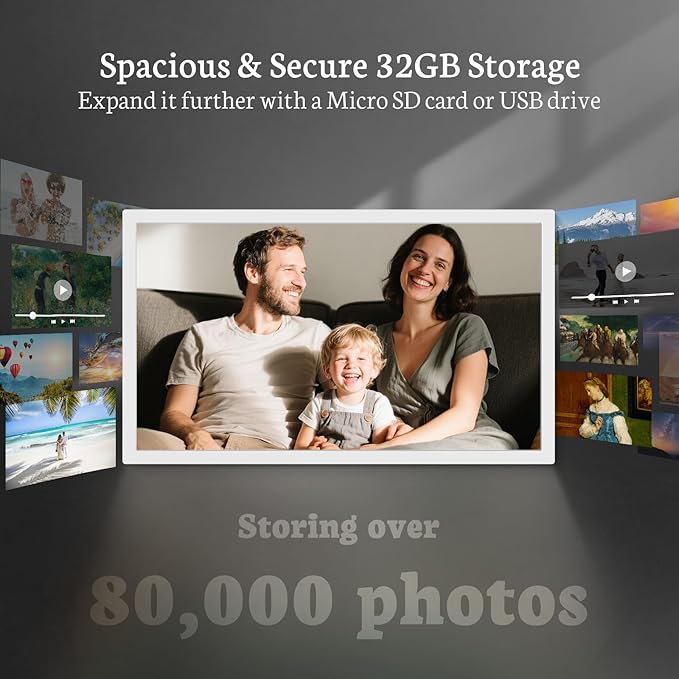 - All-In-One Digital Picture Frame for Gifting: BSIMB wifi digital picture frame designed with multi-functionalities. 1. Explore customisable settings including photo captions, weather and clock, slideshow mode, sleep mode and more. 2. Large digital picture frame perfect gift for families and friends on big days, such as wedding, birthday, Christmas, Thanksgiving, Mother’s Day and so on