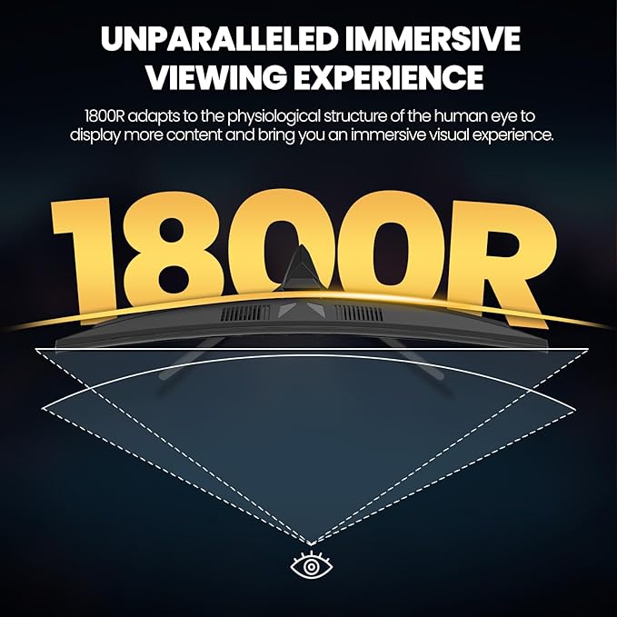 - Immersive 2K Curved QHD Display: The 27-inch 2K curved monitor delivers crisp QHD 2560×1440 resolution and a natural 1800R curve for immersive viewing. Ideal for PC gamers, home offices, or content creators, this monitor offers stunning clarity and a wide field of view—perfect for gaming setups, movie watching, or multitasking workstations
