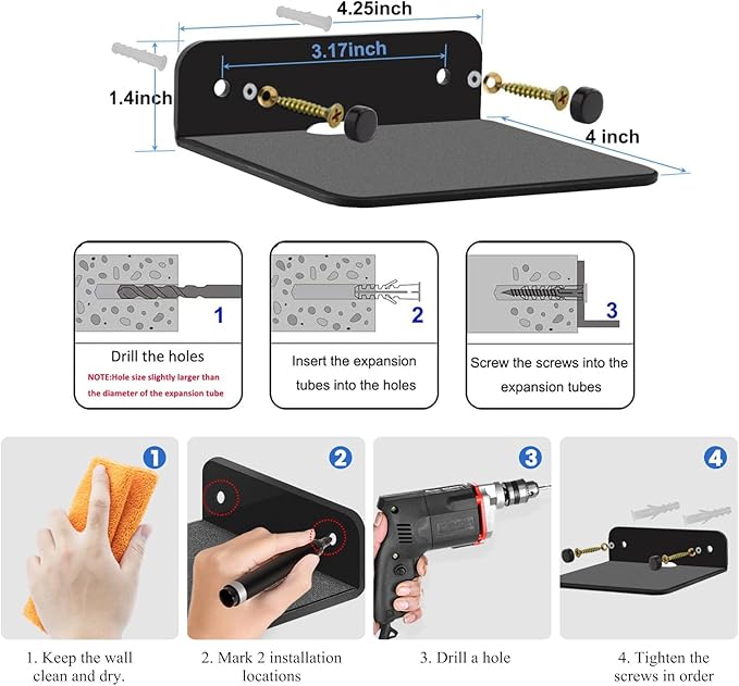 - Easy Drill Mounting Kit: Includes rust-proof screws, anchors, and step-by-step guide. No adhesive!
