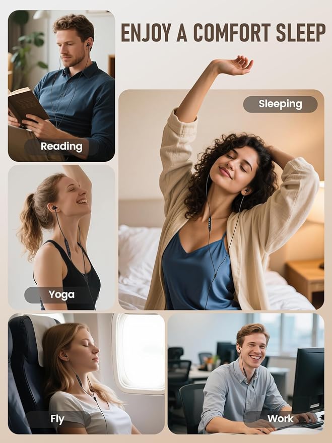 - 【Super Comfy &Light Weight】Earphones are made from flexible silicone, which enables them to easily conform to your ear canal painless without bothering your ear. Super lightweight, only weighs 0.36oz (10.2g/pair), which are almost hardly feel them when sleeping,the best companion for side sleepers.