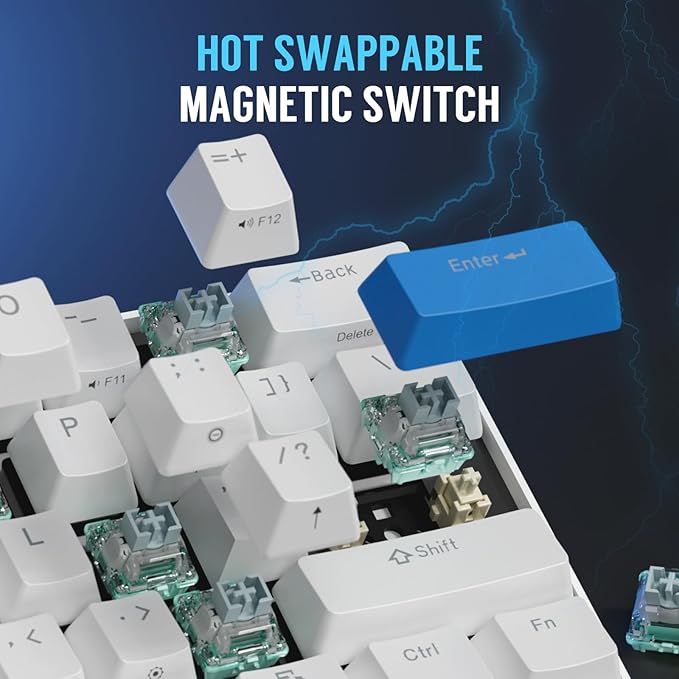 - Hot Swappable Magnetic Switch Keyboard: Utilizing hall effect for key signal triggering, the keyboard provides a rapid and smooth typing experience with minimal actuation force, it features seamless keystrokes and an instant response; High-quality PCB supports magnetic switch hot-swappable