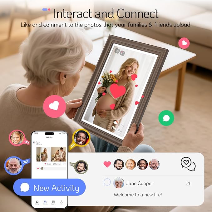 - 【Perfect Gifts Choice for Loved Ones】NexFoto digital frames with an exquisite gift-ready box, instantly update your life moments and send instant or timed wishes to electronic photo frame at anytime and anywhere. This digital photo frame can be as a perfect gift for Mother's Day, Father's Day, Christmas, Birthdays, Weddings, Housewarmings, Anniversaries, Valentine's Day or any special events. What they received was not just a digital photo frame, but also your love, care and company, help you stay connected with your loved ones.