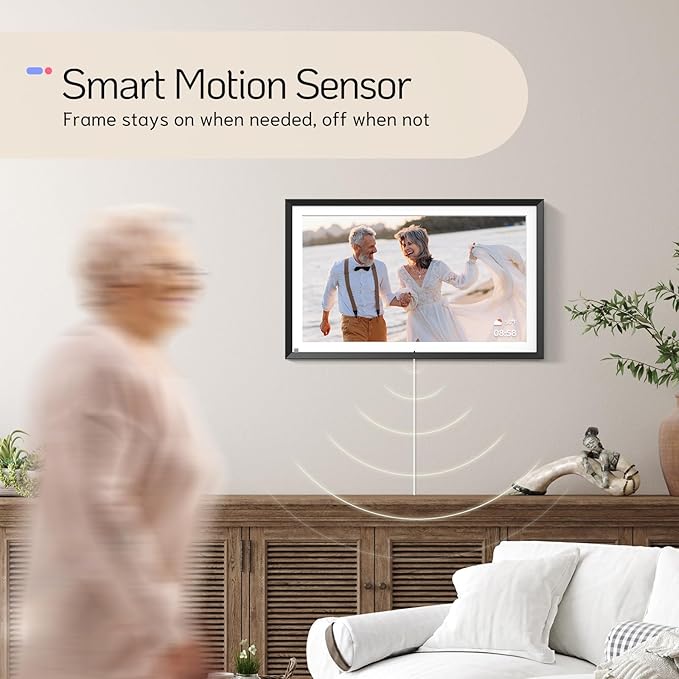 - Showcase Your Personal Gallery: NexFoto wifi digital picture frame (compatible with 2.4GHz and 5GHz) makes it effortless to upload photos and videos from your phone. You can explore a diverse range of visual art, including masterpieces and NFT art. With its minimalist modern design, this electronic picture frame blends seamlessly into any decor, enhancing your space. It can be freestanding on a tabletop or wall mounted, and the built-in gravity sensor adjusts your pictures to the correct view.