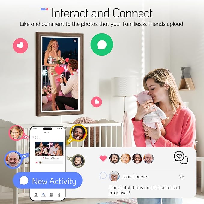- 【Perfect Gifts Choice for Loved Ones】NexFoto digital frames with an exquisite gift-ready box, instantly update your life moments and send instant or timed wishes to electronic photo frame at anytime and anywhere. This digital photo frame can be as a perfect gift for Mother's Day, Father's Day, Christmas, Birthdays, Weddings, Housewarmings, Anniversaries, Valentine's Day or any special events. What they received was not just a digital photo frame, but also your love, care and company, help you stay connected with your loved ones.