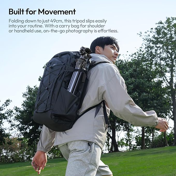 - 【Compact & Adventure-Ready】The adjustable tripod folds to just 18.9×3.15 inches and weighs 2.87 lbs – the ultimate lightweight portable tripod, professional tripod includes a carry bag for on-the-go travel and outdoor shoots.