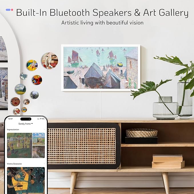 - Showcase Your Personal Gallery: NexFoto wifi digital picture frame (compatible with 2.4GHz and 5GHz) makes it effortless to upload photos and videos from your phone. You can easily explore a diverse range of visual art, including masterpieces and NFT art. With its minimalist modern design, this electronic picture frame blends seamlessly into any decor, enhancing your space. The extra large digital photo frame can be freestanding or wall mounted, and its wall-mounted design features a swivel mount for easy rotation. Whether you're displaying family memories or an art exhibition, NexFoto turns your wall into a living masterpiece.