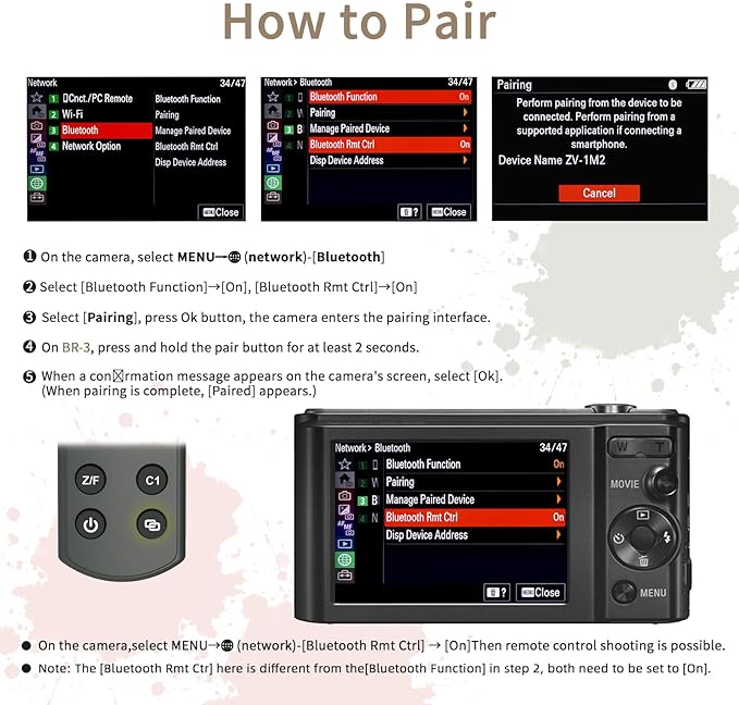 - Wireless remote control: this camera tripod is equipped with a wireless remote control. This remote control supports taking still photos, short videos, bulb shooting, continuous shooting, self shooting, zoom and focus. It has a 360 ° omni-directional remote control, and the remote control distance can reach 10m/32.8 feet. Please adjust the camera to the appropriate mode.And this remote shutter can by pressing the C1 or AF-ON button to activate the function assigned to the camera's C1 or AF-ON button.