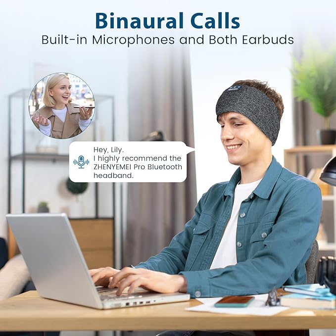 - 【Original 3-in-1 Design】Sleeping headphones, sleeping mask and sports headband 3-in-1 multifunctional design. ZHENYEMEI wireless headband headphones with microphone for hands-free answering of calls. Sleeping headphones sports headband is perfect for naps, air travel, gym, exercise, running, yoga, and sleeping.