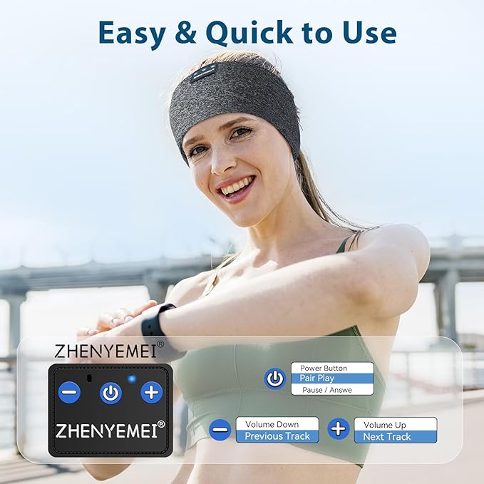 - 【Comfortable and Stylish Bluetooth Headband】ZHENYEMEI's stylish sleeping headphones Bluetooth sports headband is made of thin and light high-quality materials. The skin feels cool to the touch, and the quick-drying sports headband makes you feel comfortable even after sweating during exercise. It comes with a strap to help prevent sweat from dripping into the eyes. The well-elastic sleeping headset is suitable for various head shapes.