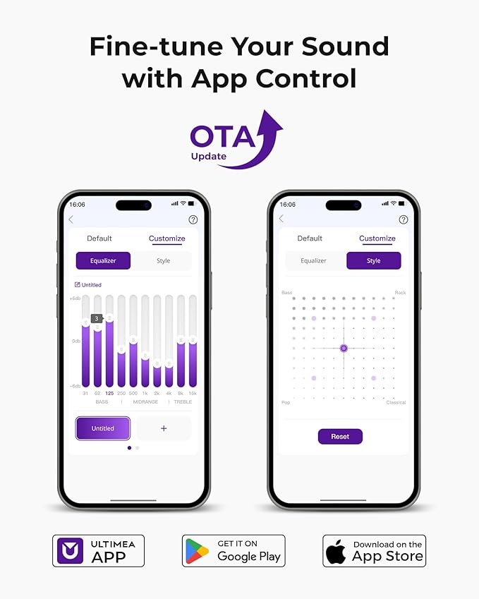 - Advanced App Control: Fine-tune your listening experience with the Ultimea app. Enjoy a 10-band graphic EQ, 121 sound presets, and 13 adjustable surround levels, letting you tailor audio to your room layout and personal preferences. OTA updates ensure your system stays up to date.