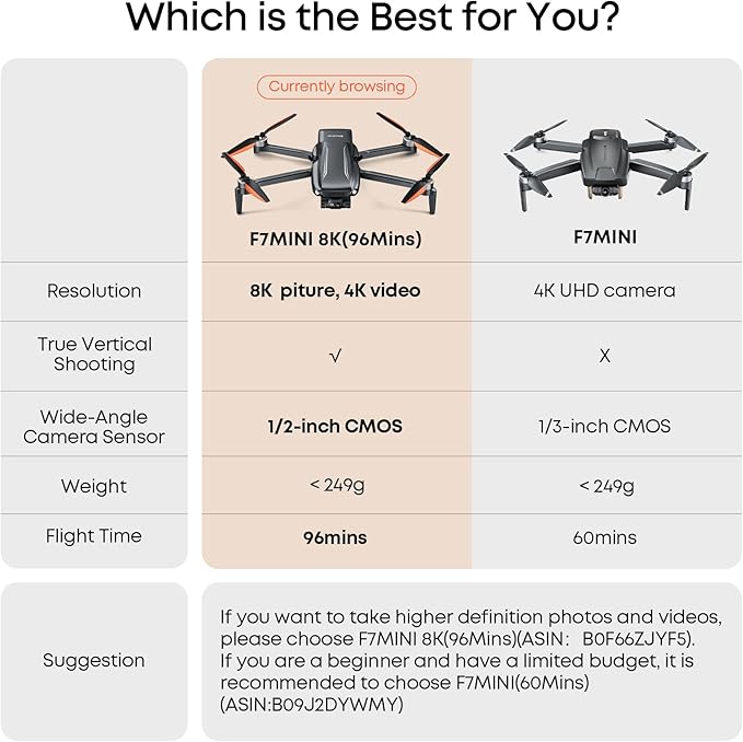 - Model Name : F7MINI 4K (Means 4K video, but supports 8K UHD photo)