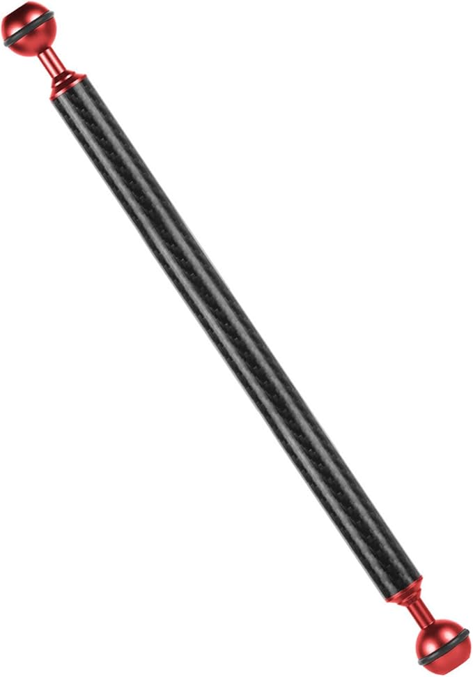 Carbon Fiber Underwater Float Arm, 1-inch Dual Ball Buoyancy Arm for Underwater Camera Tray, Video Light & Strobe for Scuba Diving Photography & Videography (Red, 11 inches)