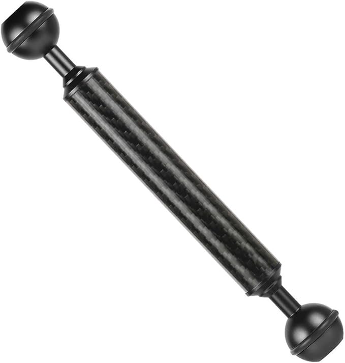 Carbon Fiber Underwater Float Arm, 1-inch Dual Ball Buoyancy Arm for Underwater Camera Tray, Video Light & Strobe for Scuba Diving Photography & Videography (Black, 8 inches)