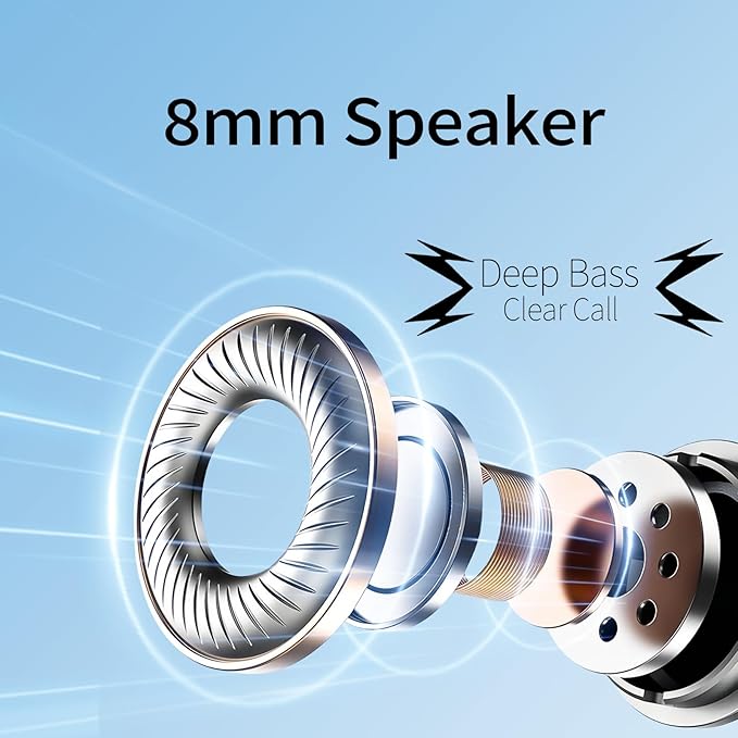 - Deep Bass Sound and Clear Call:Headphones have a built-in 8mm loudspeaker, which makes the high notes dynamic and the bass powerful, so you can enjoy the music. Built-in mics and noise-cancelling technology allow you to enjoy clear calls