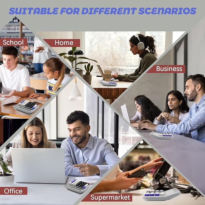 - Bottom Anti Slip: The basic calculator comes with 4 anti slip pad edges, providing additional friction and stability on various surfaces, keeping the office calculator stable on any surface, ensuring that you won't slip while using this office accessory for quick calculations.
