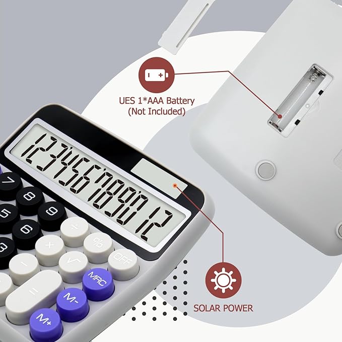 - Dual Power Calculator: Electric digital Black Grey calculator has dual electric drive, light energy and 1 * AAA battery (not included). This desktop calculator can switch power modes according to the environment, making it more durable and convenient. As long as you use solar panels in a well lit environment, they will completely power the calculator.