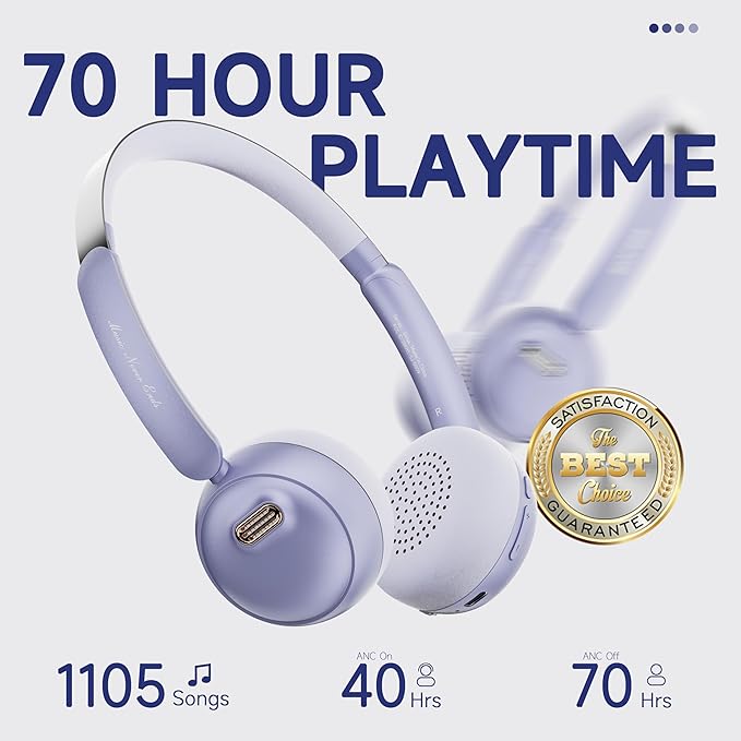 - 【Long Battery Life (Up to 70 Hours)】 Enjoy up to 70 hours of non-stop music with ANC off, or up to 47.5 hours with ANC on at 50% volume.