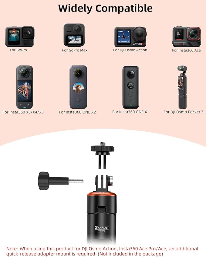 - Note: When using this product for DJI Osmo Action, Insta360 Ace/Ace Pro an additional quick-release adapter mount is required. (Not included in the package)