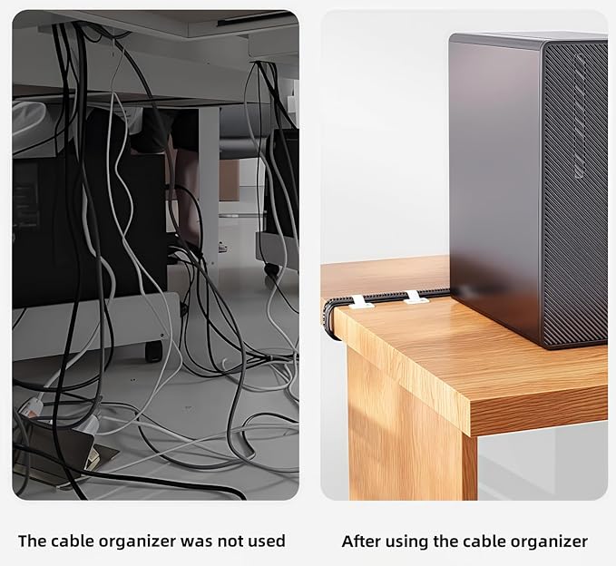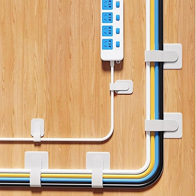 - CABLE MANAGEMENT: Self-adhesive hook and loop cable ties can effectively help you solve the clutter and nuisance caused by tangled cords. Whether in the office, home, kitchen, bedroom, studio, entertainment center or general tech gadgets, it provides the best solution to keep cords organized and space free from clutter.