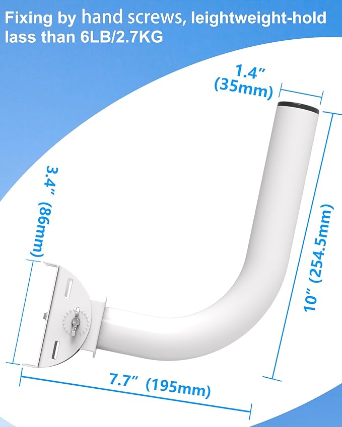 - Wall and Pole Installation: This lightweight point to point wireless bridge mount bracket is 12 inches hegight and the rod dimater is 1.38 inches. It offers the flexibility to be mounted on either a wall or a pole, allowing you to choose the installation method that best suits your needs. This convenience makes it easy to set up according to your preferences.