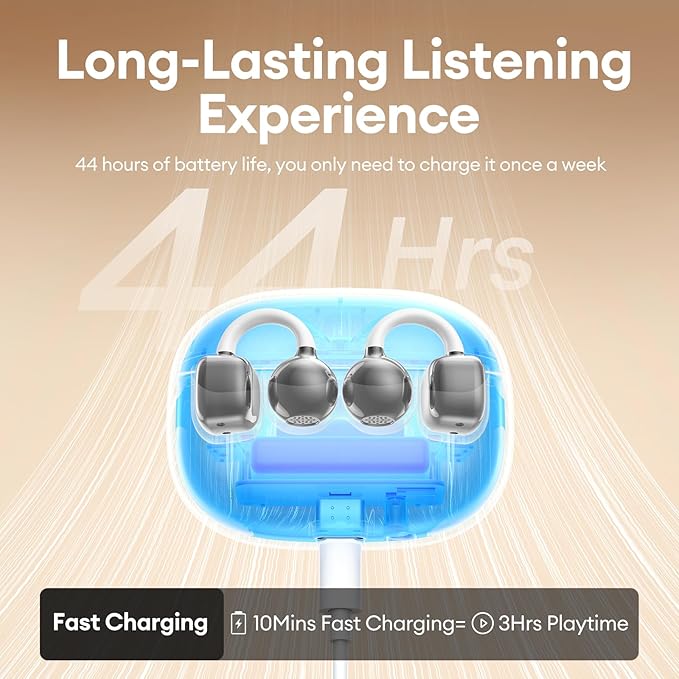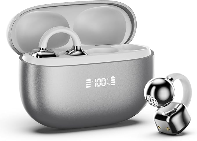 - 【Dual LED Display & 44H Long Playtime 】This clip on earbuds features an smart LED battery display design, allowing you to clearly view the battery level of each wireless earbuds and charging case, make it more cnvenient for your daily use. Enjoy up to 8 hours of music on a single charge, plus 36 extra hours from the compact charging case—44 hours total, without worrying about daily music leisure time or sports time, you'll never miss a beat on long commutes or workouts.