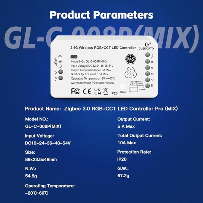 ZigBee 3.0 RGBCCT LED Strip Controller Pro RGB Color and Warm White Cold White Light Mix PWM Dimming Smart Phone App Voice Control Work with Hub Bridge (ZigBee Hub Required)
