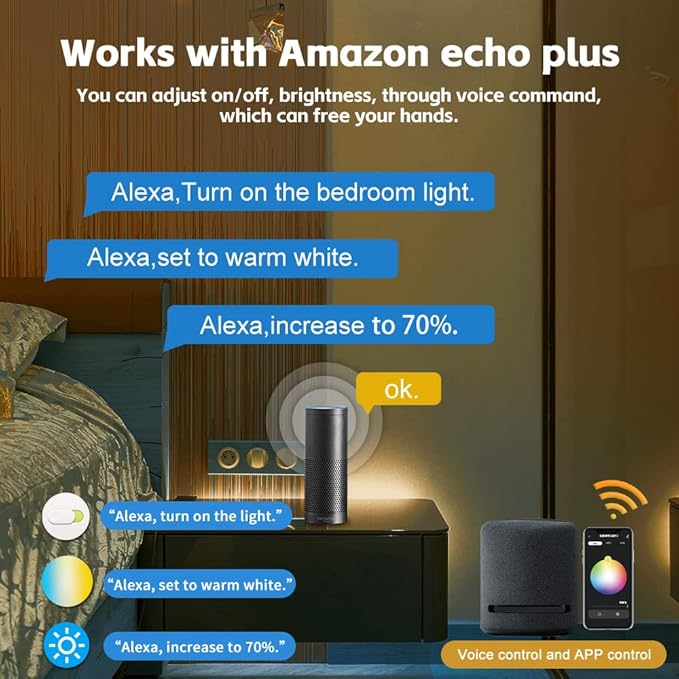 - Voice & App Control: Supports voice commands (Amazon Alexa) and smartphone app control for convenient dimming, scheduling, and scene adjustments
