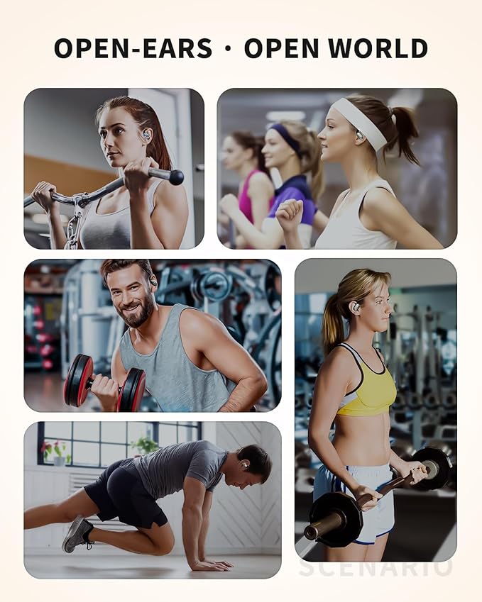 - IPX7 Waterproof & Sweatproof Durability: Engineered with advanced nano-coating and a sealed acoustic chamber, these open ear headphones deliver IPX7-rated protection against sweat, rain, and dust. Ergonomic over-ear hooks ensure a secure, stay-put fit—even during high-impact workouts and rugged outdoor adventures. Rigorously tested for over 100 hours in extreme conditions, these bluetooth earbuds over ear are the perfect companion for intense training sessions and active outdoor lifestyles