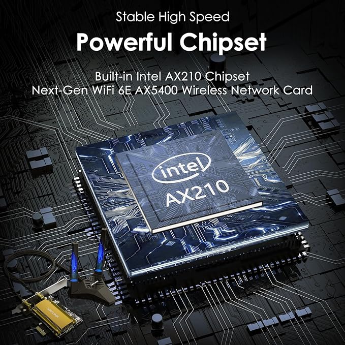 - 【Blazing-Fast Speeds】Powered by Intel AX210, enjoy tri-band speeds up to 574Mbps (2.4GHz), 2400Mbps (5GHz), and 2400Mbps (6GHz) for ultra-smooth streaming, gaming, and VR in busy networks.