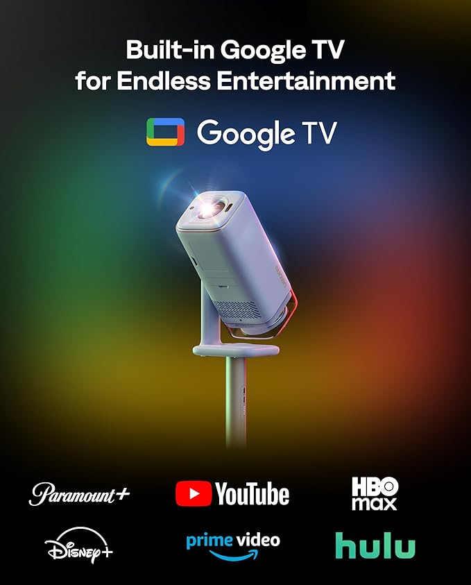 - Special Feature : Built-in Google TV for Truly Unlimited Content, Portable Projector for Outdoor Movie Nights with USB-C Powered (requires a power bank with 65W+ output), DoIby Audio & 10W Visible Speakers, Flexible Tilting Gimbal Stand, 4k Projector with 300 ANSI Lumens & full HD 1080p Resolution(4K Supported), ToF Real-time focus & Keystone Correction, Movie Projector with Bluetooth and WiFi Built-in Google TV for Truly Unlimited Content, Portable Projector for Outdoor Movie Nights with USB-C Powered (requires a power bank with 65W+ output), DoIby Audio & 10W Visible Speakers, Flexible Tilting Gimba… See more