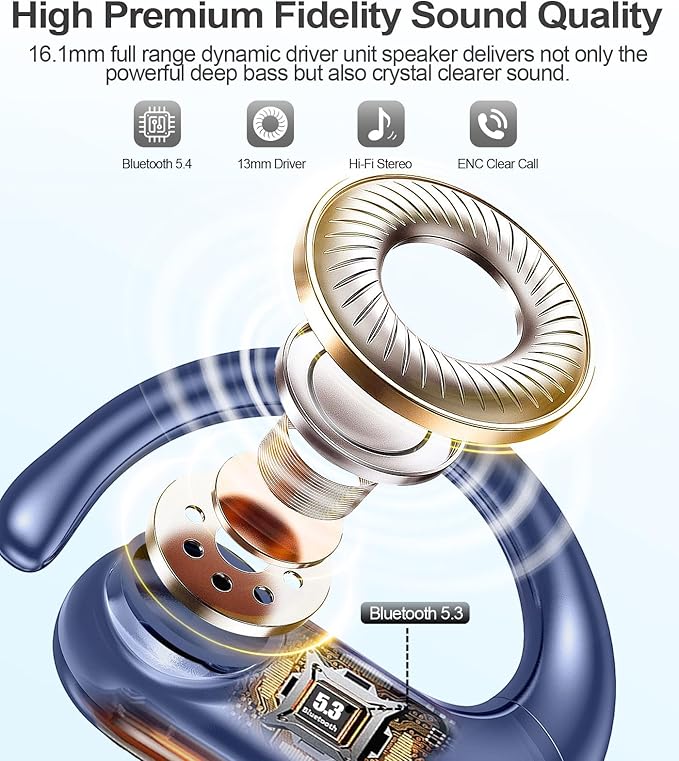 - 【Exceptional Sound Quality 】Equipped with 16.1mm vibrating diaphragm drivers, these Bluetooth earbuds deliver powerful bass, crisp mids, and clear treble for a rich, immersive sound experience. The built-in microphones isolate your voice for crystal-clear call quality, ensuring your conversations are always loud and clear, no matter where you are