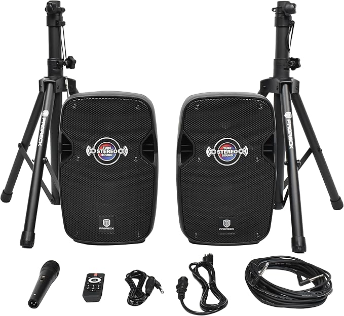 PRORECK 8-Inch Stereo Speakers, 650W Peak Power Bluetooth PA Speaker, with Wired Microphone, Speaker Stands & Remote β Portable DJ Speaker for Parties, Events, Karaoke