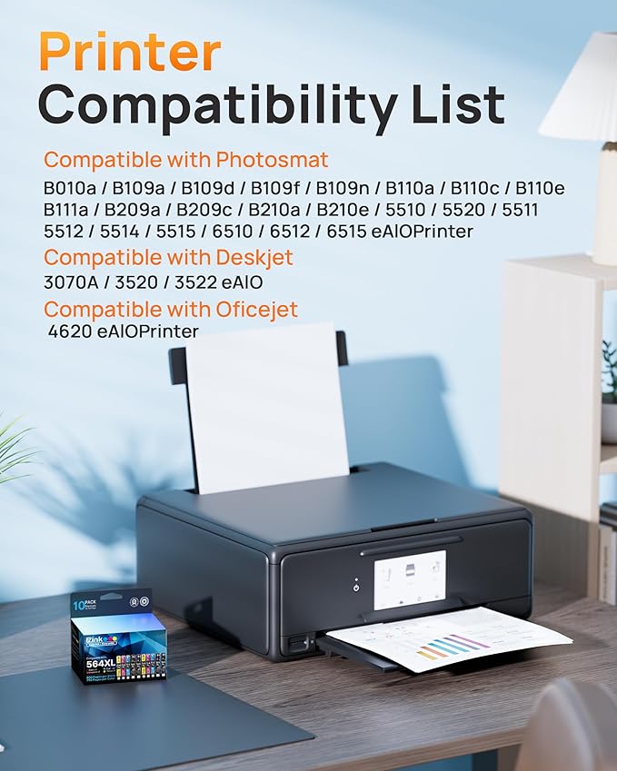 - Compatibility Options : HP Officejet 4620 4622, with DeskJet 3520 3521 3522 3525 3526, with HP Photosmat 6510/5520/5511/5512/5514/5515/5510/6512/6515 eAlOPrinter B8550 B8553 B8558 C5324 C5370 C5373 C5380 C5383 C5388 C5390 C5393 C6324 C6340 C6350 C6375 C6380 C6383 C6388 D5445 D5460 D5463 D7560 C309a C309n C309g C310a C310b C310c C410a C410b C410e C510a 7520 7510 7515 7525 eAlOPrinter Printer HP Officejet 4620 4622, with DeskJet 3520 3521 3522 3525 3526, with HP Photosmat 6510/5520/5511/5512/5514/5515/5510/6512/6515 eAlOPrinter B8550 B8553 B8558 C5324 C5370 C5373 C5380 C5383 C5388 C5390 C539… See more