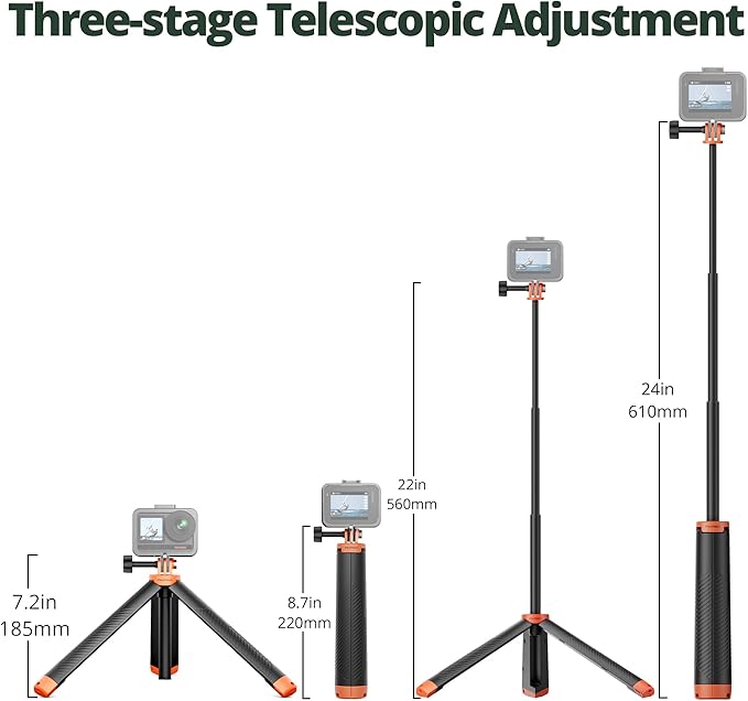 - Easy to Assemble and Extend: The extension selfie stick can extend in 3 separate lengths, allowing quick length adjustments from 8.6″to 24″.