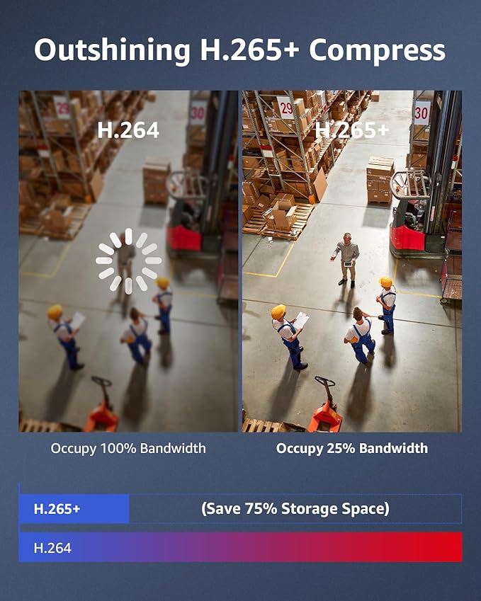 - H.265+ & 40TB HDD for Longer Recording: The network video recorder adopts the latest H.265+ video format for smoother stream and longer recording time. 4 x SATA HDD Interfaces (up to 10 TB capacity per HDD) support up to 40TB HDD (Comes with NO HDD) to meet your longer recording needs