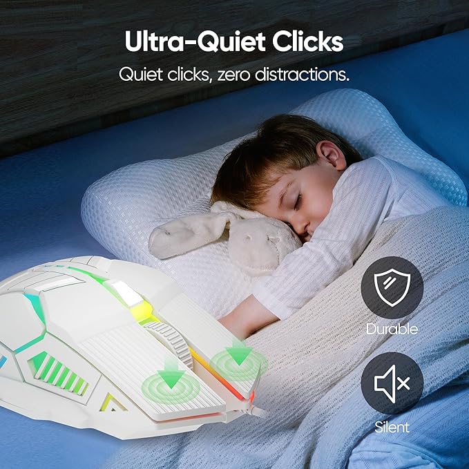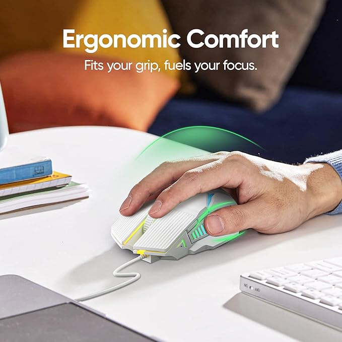Wired Gaming Mouse - Lightweight USB Optical Computer Mice with 7-Color RGB LED Lights, 4 Adjustable DPI (1200-3200), 6 Buttons, Ergonomic Design for Windows 7/8/10/XP/Vista & Linux (White)