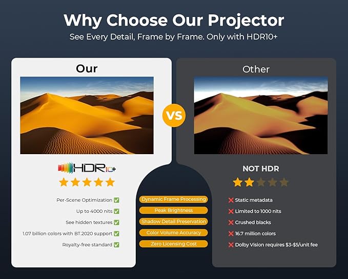 - 【Dust-Proof Sealed Optical Engine for Longevity】This innovative feature not only protects the internal components of the projector but also ensures consistent image quality over time. By preventing dust buildup, it helps maintain optimal performance and extends the projector’s lifespan, giving you peace of mind and reliability for all your viewing needs.